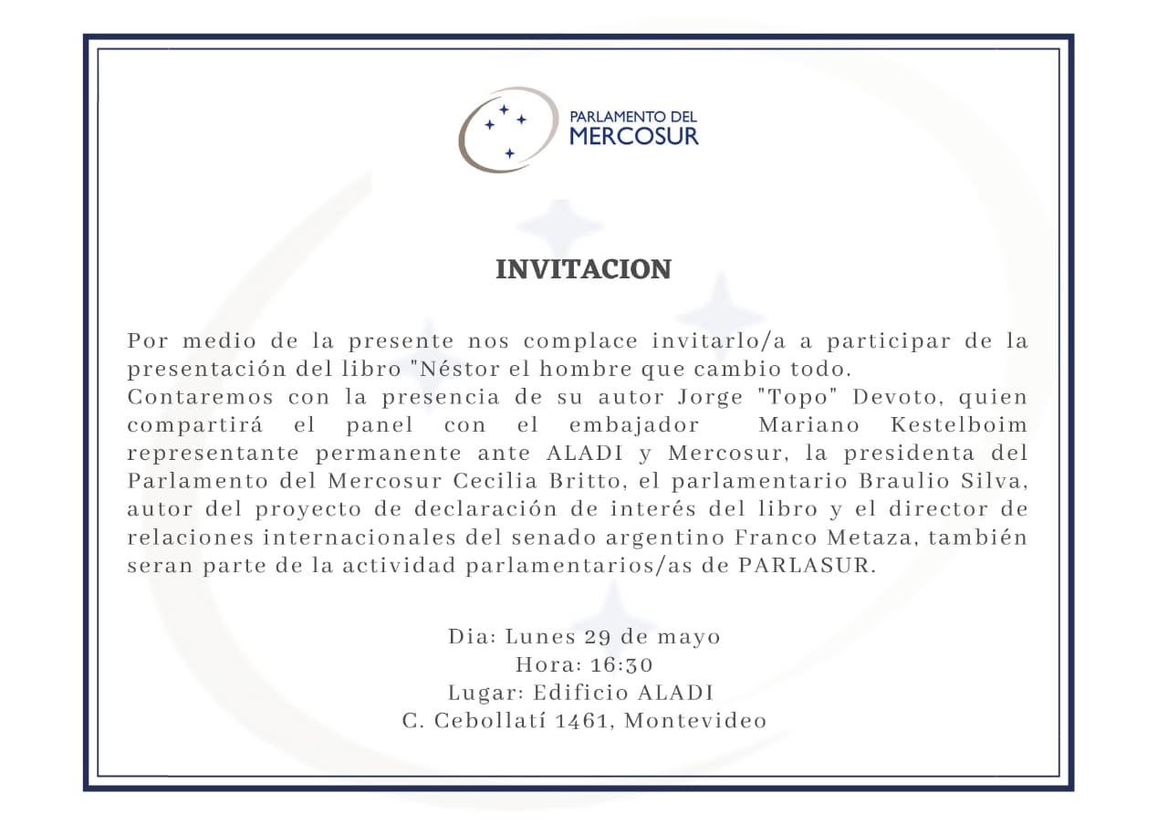 El parlamentario argentino Braulio Silva Echevarría presentó ante el Parlamento del Mercosur la declaración de interés del libro "Néstor, el hombre que cambió todo", la que finalmente fue aprobada el martes 29 de mayo.
