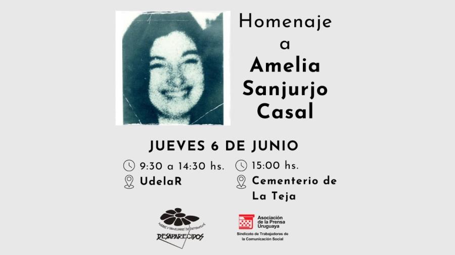 La Asociación de Madres y Familiares de Uruguayos Detenidos Desaparecidos junto a la familia de Amelia, convocamos a homenajear y despedir a Amelia Sanjurjo Casal. Jueves 6 de junio, de 9.30 horas a 14:30 horas en la Universidad de la República, desde allí partimos al Cementerio de La Teja.