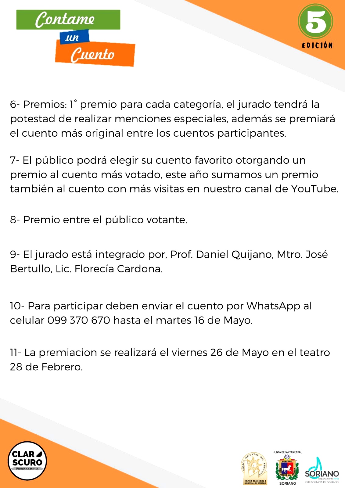 10. Para participar deben enviar el cuento por Whatsapp al celular 099370670 hasta el miércoles 11 de mayo.