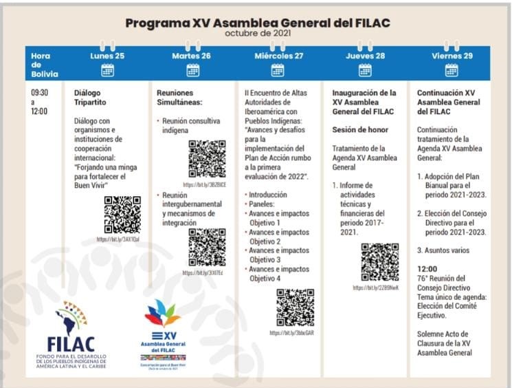 El lunes 25 de octubre dará comienzo la XV Asamblea General del Fondo para el Desarrollo de los Pueblos Indígenas de América Latina y El Caribe (FILAC), con una trasmision en vivo a la que se invita a participar y que será trasmitida por @fondo.indigena en Facebook y en Youtube y también por el Portal APU.uy.